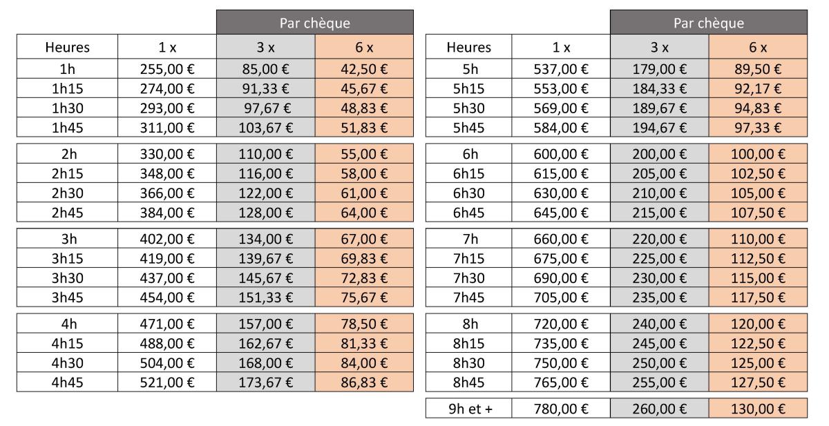 Tarifs: