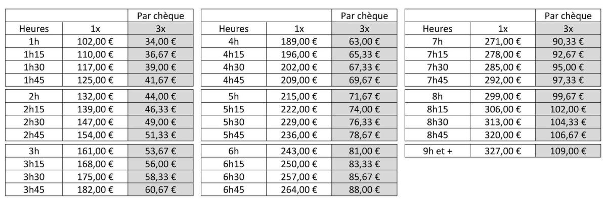( Après votre ou vos cours d'essai ! )